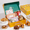 Light up Diwali celebrations with a hamper that blends festive tradition with gourmet indulgence. This thoughtfully curated selection features classic Indian sweets like kaju katli and besan laddu, paired with Masqa chocolates, roasted peri peri millet mix, and other delightful treats. Presented in a vibrant floral keepsake box and paired with a golden metal lantern and festive greeting card, it is a perfect way for companies to share gratitude and festive joy with employees, clients, and business partners.