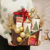 Treat your friends and family to a festive surprise that feels thoughtful, comforting, and wonderfully seasonal. This reusable brown PU leather basket is packed with a rich square plum cake, roasted salted cashews, salted roasted almonds, a cheerful berries mix, and peri peri almonds tucked inside two Christmas cannisters. Madagascar dark chocolate and two gold round assorted chocolates add a touch of indulgence. The arrangement is finished with gold-sprayed cypress, a Merry Christmas paper tag, and four golden assorted baubles. It is a warm, elegant gift that instantly lifts the holiday spirit.