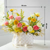 A symphony of colours blooms in harmony, capturing the essence of grace and timeless beauty. Carefully crafted in a luxurious woven basket, it features a harmonious blend of soft pastel and vibrant golden-hued blooms, all thoughtfully arranged to evoke feelings of joy and sophistication. Finished with an elegant satin ribbon, this makes for an exquisite statement piece or a heartfelt gesture to mark any special occasion. - Includes: - Total No. of Stems: 23 - Yellow Gerbera, Yellow Carnation, Solidago, Hermosa Roses, Yellow Spray Chrysanthemum - Satin Ribbon - White Weaved Basket - Dimensions: - Height: 46 cm / 18 inches - Width: 46 cm / 18 inches