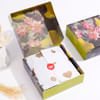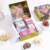Usher in the New Year with Gourmet Bliss Personalized New Year Hamper, perfectly curated for the occasion. Relish the natural and delicious crunch of plain cashews and savour the decadent flavour of two almond pralines. This hamper also includes the indulgence of velvety bar milk and dark chocolate, crafted to please every chocolate aficionado. Adding a festive touch is a beautifully designed greeting card, adorned with the heartfelt words Happy New Year. Personalize the greeting card with the recipient's name, making this hamper a memorable treasure for welcoming the new year ahead.