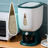 Upgrade your kitchen and simplify your life with this innovative grain dispenser. Crafted from high-quality materials, it is equipped with a measuring cup and ensures precise portion control, reducing waste for a more efficient lifestyle. Featuring a user-friendly button for controlled dispensing, and the unique arc design prevents old grain accumulation. The convenient lid with a large opening ensures easy refilling, maintaining freshness. The decomposable box, secured with buckles, allows for effortless cleaning, while the transparent window helps indicate the level of grains, cereals, etc.