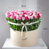 Timeless elegance meets romantic abundance in this layered pink-and-blush masterpiece, designed to surround the heart with quiet, sincere affection.A soulful symphony of blooms that unfolds like a quiet confession, layered in graceful abundance to mirror the steady heartbeat of a love. - Total No. of Stems: 120 - Sweet Avalanche Roses, Aqua Pink Roses,Cerise Roses - Interflora Ribbion - Round Box, Beige - Dimensions: - Height: 55 cms / 50 inches - Width: 50 cms / 20 inches