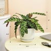 Invite calm and freshness into any space with this elegant Calathea plant, known for its striking patterned leaves and vibrant green hues. Resting in a sleek white line ceramic vase with a matching plate, it adds a touch of sophistication to modern interiors. Perfect for desks, living rooms, or cozy corners, this plant thrives with minimal care. Designed with gifting in mind, it makes a thoughtful choice for birthdays, housewarmings, or any occasion that calls for something naturally beautiful and lasting.