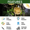 Enhance your outdoor ambience with these solar-powered crystal crackle glass hanging lights. Crafted from durable stainless steel and adorned with charming crackle glass globes, these lights emit a warm, cozy yellow glow. The built-in solar panel harnesses sunlight to illuminate your space without using any electricity. Just flip the switch on, secure the lid, and hang them in a sunny spot. Perfect for garden decor, barbecues, camping, and outdoor gatherings, these lights create a delightful, relaxing atmosphere.