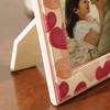 Turn your favourite memories into a beautiful decor statement with this charming heart-themed photo frame. Featuring warm pink and red heart motifs, it brings a soft, decorative touch that enhances your special moments. Thoughtful and timeless, it serves as a meaningful keepsake that celebrates special connections. Personalize it with your chosen photo to create a unique display piece filled with lasting memories. - Material: Faux leather and MDF, providing durability and a premium finish. - Size: 10 x 15 cms, ideal for displaying your cherished photo. - Personalization: Add your favourite picture for a sentimental touch.