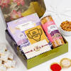 Celebrate your amazing bond with this heartfelt rakhi hamper, the perfect Raksha Bandhan gift for brothers. This unique set features a beautiful handmade rakhi with an auspicious Swastik design adorned with pearl beads and purple Meenakari work. Show your appreciation with the Best Brother Ever trophy fridge magnet. Indulge him with delicious Kaju Katli and a wholesome, healthy treat, roasted millet mix jar. The hamper is completed with traditional roli and chawal, ensuring a complete and joyous celebration.