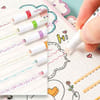 Fancy little markers here! It uses a tiny scroll wheel to circulate and print the pattern on the paper, which is a brilliant design and works incredibly well. It comes with beautiful packing and high quality; our curve highlighter pens are perfect for arts and crafts, DIY projects, coloring books, and journaling. It will be a fantastic gift for a teacher, writer, or artist. Please note - Because of the roller design, the pen should be perpendicular to the paper to get a complete pattern. This product includes 6 marker pens in assorted colors and patterns.