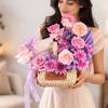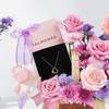 Soft pink blooms and a sparkling heart pendant come together in a gift that speaks pure admiration. Sweet Avalanche roses, deep purple roses, purple daisies, and spray chrysanthemums surround the elegant Palmonas Heart Pendant, accented with purple table palm and a soft tissue ribbon. Presented elegantly, this Women's Day floral arrangement expresses love, appreciation, and timeless charm. - Total No. of Stems: 7 - Sweet Avalanche Rose, Deep Purple Rose, Purple Daisy, Mauve Spray Carnation - Palmonas Cute Heart Pendant Necklace - Base Metal: Stainless Steel - Plating: Rose Gold Plated - Waterproof and anti-tarnish,this Heart Pendant Necklace radiates timeless romance with a cute design - Women's Day Tag - Purple Tissue Ribbon - Cane Basket