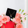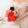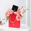 Graceful florals and timeless pearls come together in a gift that celebrates elegance and beauty. Delicate roses and spray carnations bloom beautifully from a signature red bag, paired with the elegant Palmonas Beaded Pearl Chain. This refined arrangement blends fresh florals with classic jewelry, creating a luxurious gesture of appreciation for someone special who inspires and brightens every day. - - Total No. of Stems: 9 - - Light Pink Spray Carnation, Harmosa Rose - - Palmonas Beaded Pearl Chain - - Base Metal: Stainless Steel - - Plating: 18k Gold Tone - - The Pearl Beaded Chain Necklace is a bold, golden creation with rippled details, making it a statement piece that adds character and edge. - - IGP Red Bag