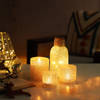 This beautifully crafted festive lights gift set consists of a corked glass decanter that comes with LED string lights in the cork; and 3 various-sized glass candle holders. All the pieces are made of crystal glass covered with cut-dana glass pipe beads. Comes with a candle and two t-lights.