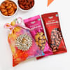 Gift the spirit of Holi with this thoughtfully curated hamper, blending festive flavours and elegance. Enjoy a bottle of refreshing Thandai with two vibrant 100 grams of organic gulals. Packed in a beautifully designed flower motif potli are crunchy Peri Peri almonds 50 grams, and Thai Chilli cashews 50 grams, perfect for indulging. Accompanied by a heartfelt floral greeting card, all presented in an eco-friendly elephant box. A perfect blend of tradition and luxury, making every moment special. Personalize the card with your brand logo and gift it to your vendors, clients, and employees.