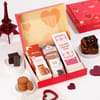 Say it with snacks and a keepsake in one of the most delightful valentine's day gifts. Packed for instant gifting, this hamper blends rich bakes, gourmet chocolate, and an adorable desk display that feels personal and photo ready. The typewriter themed acrylic frame adds a charming message You Are Just My Type that they can keep on their table long after the treats are gone, making the gesture feel thoughtful and memorable. Perfect for surprise deliveries, cozy date nights, or a sweet way to confess your feelings.<br>- Includes:<br>- Center Filled Choco Cookies.<br>- Masqa Velvety Chocolate Coffee Chocolate.<br>- Choco walnut brownies.<br>- Rectangle acrylic frame on wooden stand, W 3 cm H 7.7 cm, stand 3 in x 1.5 in.