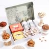 Infuse your festivities with elegance through this luxurious Diwali hamper. Featuring Chana Badam Barfi, premium dry fruits, and gourmet snacks, it offers the perfect blend of tradition and indulgence. The hamper includes intricately designed tins, a silver-plated Lakshmi-Ganesha frame for blessings, and lotus-shaped tealight holders to brighten every space. Thoughtful and festive, this hamper is an ideal gift for family, friends, or colleagues, spreading joy, prosperity, and light this Diwali.