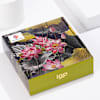 Bring the festive spirit of Diwali to your business relationships with this thoughtfully curated hamper for clients, vendors, and employees. Housed in an elegant green lotus box, it features a metal flower-shaped diya, Eternal Tulsi luxury bamboo-less incense sticks, MASQA velvety chocolate with mixed nuts, buttery cookies, and a Berry Mix pouch. A beautifully designed greeting card completes the hamper, creating a perfect blend of tradition, indulgence, and elegance. Personalize the card with your brand logo and gift it to your employees, clients, and business partners.