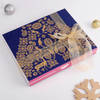 Experience the magic of Christmas with this charming hamper nestled within a chic blue slider box. Adorn your tree with exquisite ornaments, savour the Velvety Bar dark chocolate, and delight in handcrafted wooden blocks, adding rustic charm to your decor. Completing the set is a delightful jute potli, perfect for gifting or storing treasures. Curated to enhance the joy of Christmas, this ensemble of elegance and festive cheer promises to illuminate your celebrations.