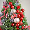 A spell of festive joy, Merry Magic enchants with cypress leaves and silver-touched ming fern, aglow with rose gold baubles and pink-sprayed pinecones. Red and green baubles dance with reindeer and snowflake charms, while velvet bows and pearl strings shimmer softly. All rests in a pink houndstooth box, a treasure of Christmas wonder and delight.