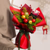 Invite them into the warmth of the season with a Christmas bouquet that blends charm, colour, and a touch of nostalgia. Cyprus stems, a rustic pine cone, and a mix of red and gold baubles come together to form a cheerful display that suits any holiday home. Two bright red berries add a playful touch, while the dual-toned red and maroon wrap gives it a rich, festive finish. Hand-tied with a green tissue ribbon and paired with a personalized Holly Jolly Christmas photo magnet, it is a thoughtful keepsake they will treasure long after the season ends. Personalize the fridge magnet with their picture to make this gift special and memorable.