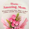 Surprise your mom on her birthday with a bouquet of aqua-pink roses, a tender reminder of your unwavering love and care. Adorned with a sheet bearing the words 'You Are Amazing Mom', it is a heartfelt tribute. This stunning bouquet symbolizes the comfort and endless affection your mom showers upon you every day. Gift her this token of gratitude and admiration that celebrates her in the most unique way.