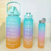 A magnificent bottle for all your escapades. Crafted from BPA-free frosted plastic, this set includes three bottles of 2000 ml, 900 ml, and 300 ml, each displaying inspirational quotes and time markers to remind you to drink water. A handle attached to the bottles makes it easy to carry around. Carry your water, juices, or fruit-infused water in style. You can also gift this to your loved ones and encourage them to stay hydrated.