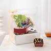 Nurture your father with love with this radiant hamper, including a vibrant money plant. Giving a serene and calm vibe, the hamper is crafted of a money plant snug in a beautiful red planter with an atmospheric print depicting trees, birds, and elephants. The ensemble is completed with a hexagonal photo frame and a delicious walnut brownie, adding a delectable charm to the hamper. Personalize the frame with a beautiful memory of you and Dad, and let it serve as a reminder of your love and respect towards him.