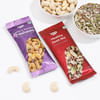 Indulge in the rich blend of textures and flavours with this thoughtfully curated snacks hamper. It features Epiphany California Pistachios, Roasted Salted Cashews, a nutritious Seed Mix, A Velvety Bar Dark Chocolate, IGP Instant Coffee, and Atom Eatz Mini Pretzel Knots, paired with a stylish Blue Ceramic Mug. Everything is beautifully arranged in a reusable Blue Faux Leather Basket, making it a perfect gift of comfort, taste, and elegance for any occasion or thoughtful gesture. Personalize the mug with their name to make it a heartfelt gift.