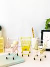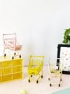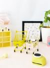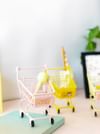 Quirk your organizer game with our organizer shaped like a shopping cart. You can store your pens, pencils, erasers, sticky notes, or place this on your vanity to store your everyday makeup brushes. The wheels can move and slide on the table. It comes as a single piece.