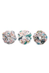 Add these pretty scrunchies to your collection. You can flaunt it with any outfit of your choice. It comes in a set of 5 and set of 3 and includes Grey Bandhani Kilim, White Abutilon, Brown Abutilon, Pink Ikat Love, White Ikat Love print velvet large scrunchies.