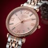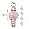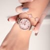 Designed to turn every moment into a statement of elegance, this watch and bracelet combo by Bruno Milano brings glamour to her everyday style. The pearl pink studded dial sparkles beautifully, framed by crystal accents and paired with a polished rose gold strap for timeless appeal. Complementing it perfectly, the clover bracelet adds soft femininity and charm that feels versatile and gift-worthy. - Material: Crafted using premium stainless steel and alloy with a smooth rose gold finish, offering lasting shine. - Dimensions: Watch case and strap designed in a balanced 25 x 30 x 15 cms profile, delivering a bold yet elegant presence on the wrist. - Crystal Accents: Studded crystals encircle the dial, adding a luminous and sparkling look.