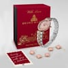 Pearl Pink Crystal Studded Watch And Clover Bracelet For Her