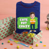 Pamper your boy on a special day or give away as a return gift, this cool gift box is it! Inclusive of a caricature-themed T-shirt, you can personalize the face with a picture, Tennis Ball and Gummy Bear Candy and a silicone Fusion Pop it Band, it's everything the kids want and more.
