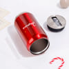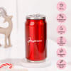 Gift festive cheer and indulgence with this Personalized Christmas Hamper. This set centers around a vibrant red, coke can-shaped thermal tumbler, personalized with the name in white text, perfect for keeping drinks hot or cold. It includes two bars of rich Masq Velvety Chocolate: the decadent Madagascar Dark and the bold Classic Coffee flavour. The hamper is beautifully accented with seasonal decor, featuring a 'We Wish You a Merry Christmas' ornament and a charming red reindeer felt decoration. This practical yet luxurious set is the perfect way to share warmth and sweetness during the holiday season.
