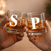 Raise a toast in style with these personalized glasses set, designed to make every sip special. Each glass features a bold monogram initial paired with the full name, creating a striking and elegant statement piece. Crafted from premium-quality glass, these sturdy tumblers are perfect for serving whiskey, cocktails, or even soft beverages. Ideal for anniversaries, weddings, birthdays, or thoughtful gifting, they blend sophistication with a personal touch. Elevate your drinkware collection or surprise a loved one with a keepsake they'll cherish and use every day.
