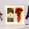 Add a warm glow to cherished memories with this unique and thoughtful gift set. An LED MDF photo frame showcasing two of your favourite pictures along with a heartfelt message, creating a warm and glowing display that lights up any room. Paired with a beautifully crafted bouquet of crochet roses wrapped in rustic jute, this set adds a charming decorative touch to your home decor. Perfect for gifting just because to make them feel special. - Material: MDF frame with pure yarn crochet roses, combining elegance and charm. - Size: Frame - 28 X 27.5 X 3 cm, Bouquet - 17 cm, perfect for any space. - Personalization: Add your pictures to make it meaningful and yours.