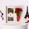Brighten up your Valentine's Day with this unique Valentine's Day gift idea, an LED MDF frame featuring two of your couple pictures along with a heartfelt message, You Light Up My World. Paired with a beautiful bouquet of crochet roses wrapped in jute, it adds a charming touch to your home. Personalized with your own photos, this decorative piece makes for an unforgettable gift. - Material: MDF frame with pure yarn crochet roses, combining elegance and charm. - Size: Frame - 28 X 27.5 X 3 cm, Bouquet - 17 cm, perfect for any space. - Personalization: Personalize with your couple pictures to make it meaningful and yours.