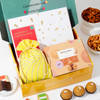 Bring a smile to your significant other's face with love and happiness on your anniversary using this Sunny Elegant Anniversary Hamper. This hamper includes delicious and premium treats such as besan laddoo, thai chilli cashew nuts, peri-peri almonds, and assorted chocolates. Nestled in a stunning yellow potli that is made of high-quality materials and adorned with gota embroidery. The hamper is accompanied by a greeting card adorned with the words May Our Love Continue To Shine Bright. Personalize the greeting card with a picture of your cherished memory.