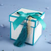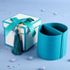 A one-of-a-kind gift, this explosion box includes a pen stand which doubles as a photo frame, blueberry dragees and a necklace with a dual heart pendant. This gift can be personalized with four images that are packed in a box which is wrapped with a blue satin ribbon. Perfect gift for any occasion