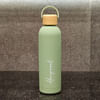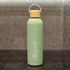 Stay hydrated in style with this premium and personalized light green vacuum-insulated water bottle. This 750 ml bottle is crafted from durable stainless steel with a luxurious satin finish, combining elegance and sturdiness. What sets these bottles apart is their shatterproof and condensation-free design, ensuring a mess-free experience. The sturdy screw-top wooden lid provides a reliable seal, making them perfect for everyday use. Designed to keep drinks hot or cold for hours, they make an ideal gift. Personalize the bottle with your name for a touch of uniqueness and constant hydration.
