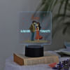 Admire your bond with this charming LED lamp designed for couples. The transparent acrylic sheet features an adorable illustration of a couple, little heart accents, and the word Love, personalized with your names for a heartfelt touch. Resting on a sleek black base, it offers seven RGB colour options to match any mood. Powered by batteries and USB charging, it is as practical as it is romantic. A perfect gift for anniversaries, weddings, or just to remind someone special how much they mean to you. Personalize the lamp with your and their names to make it a gift that they will cherish always.