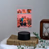 Illuminate cherished memories this Mothers Day with this unique acrylic LED lamp. Four of your favourite photos of Mom are beautifully showcased within the heartfelt message Mom We Love You. Set upon a sleek black base, this lamp offers a mesmerizing display of seven vibrant RGB colour options to create the perfect ambience. Powered by battery or USB, it is a radiant tribute to the woman who means everything. A personalized and glowing gift that will warm her heart and brighten her home. Personalize the lamp with Moms cherished pictures for a truly personal and glowing tribute.