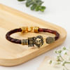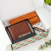 Show your appreciation to your loved ones with a gift that combines everyday utility and timeless elegance with this thoughtful hamper. Arranged in a green box is a tan leather wallet with a luxurious croc pattern and a brown PU leather sunglass case to protect his glasses and spectacles. The hamper also includes an oxidized gold finish brass bracelet with a lion motif engraved on it. Personalize the wallet with his name and make the gift extra special.