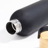 Equip yourself with this sleek matte black stainless steel bottle. Blending style with robust functionality its shatterproof and condensation-free design ensures durability and a comfortable grip, making it perfect for any adventure or daily commute. The elegant screw-top wooden lid adds a touch of natural sophistication and ensures a secure seal. This versatile bottle is ideal for keeping your beverages at the perfect temperature without leaks or spills. A modern and practical gift for anyone valuing design and reliability. Personalize the bottle with your name and enjoy hydration.