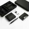 Bring a smile to his face with something stylish and thoughtful. This 4-piece black Faux leather set includes a wallet, card holder, keychain, and metal pen, arranged in a sleek black box. It is a practical yet premium gesture for someone who appreciates polished, everyday essentials.<br>- Material: Crafted with smooth Faux leather for the wallet and card holder, paired with a sturdy metal pen and a durable metal keychain, offering long-lasting use.<br>- Size: Wallet: 11 x 9 cms, Card Holder: 9 x 6 cms, Keychain :9 x 2 cm. Compact pieces designed for easy daily carrying.<br>- Personalization: Personalize each Faux leather piece with his name using UV printing, giving the set a unique and thoughtful touch.