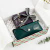 Celebrate his special day with this lovely gift set curated just for him. Meticulously crafted in faux leather, the sunglasses case exhibits an olive green shade and has a soft, scratch-resistant lining for glasses. Paired with it is a boastful Eau De Parfum, which hits all the right notes of Musk, Neroli, and Cinnamon, a captivating fragrance for the senses. Personalize the sunglasses case with his name and make it a cool and special accessory for him.
