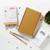 If sustainability is the key then the Plantable Calendar with Mini Notebook is a bio-degradable stationery to have at your work desk. The calendar comes with a wooden stand along with 2 seed pens. It\'s the perfect stationary kit for your work associates and employees.