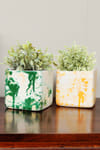 These little emissaries of joy! Cute and eye catchy. These pots sport grey marbling on them. Use it as a desk planter a decorate your corner with a combination of marbled pots. It is made of ceramic and comes as a single piece.