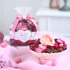 Inspired by the respite of a picnic spread on a sunny afternoon, the english garden basket curates fun, mindfulness, decadence and a playful sprinkle of nature's love. It comprises a pink kalanchoe plant wrapped in a mauve frosted wrap, Valley of Peony scented potpourri, centre-filled chocolate cookies, floral-infused radiant tea box for beauty and health to carry best wishes for the day. Truly a rhapsodic blend of warmth and cheer.