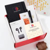 Elevate your team's workspace with our exclusive employee kit! Mark your moments with the premium Fountain Pen and indulge in Velvety Bar Roast Almond. Stay connected with Black Earbuds CM and organize thoughts in Primo A5 Black Premium Diary. Presented in a Red Eco-friendly box with White Employee Kit Sleeve, it fosters a positive workplace culture. Personalize the kit with your brand logo and show appreciation to your team.Note: The sleeve can be personalized for orders above 100 kits.