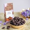 A vivid celebration of Rakshabandhan in shades of purple and gold. Elegant daisy blooms, gilded eucalyptus, and shaded palm leaves are styled with a lavender bhaiya bhabhi rakhi set with pastel pink stones, a pearl-studded centrepiece, lilac drop charms, and gold-detailed beadwork on twisted lavender threads in a round box, tied with a bow and soft pearl strings. Delicious kaju katli, crisp choco-coated almonds, and sweet strawberry pretzels add a touch of indulgence to this rakhi gift hamper, perfect to buy rakhi online and honour your sibling with a tradition wrapped in beauty.