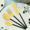 Black is beautiful. Black and gold is a lot more. This grand looking black and gold toned cutlery set is sublime and classy. It consists of a spoon, a fork, a knife and a dessert spoon and is made from stainless steel. The statement quad design is a great conversation starter too.