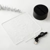 A lamp that beautifully portrays your luminous connection. Made of high-quality materials, this lamp features illustrations of birds and flowers in a heart shape with personalized names. It has a black base light with a personalization option, along with 7 RGB colours, a 5mm transparent acrylic sheet on top, a battery slot base, and a USB power cable. Personalize the lamp with your names together. Place this lamp on the side table for your next get-together and see how many compliments you receive. Note: The battery is not included in the package.